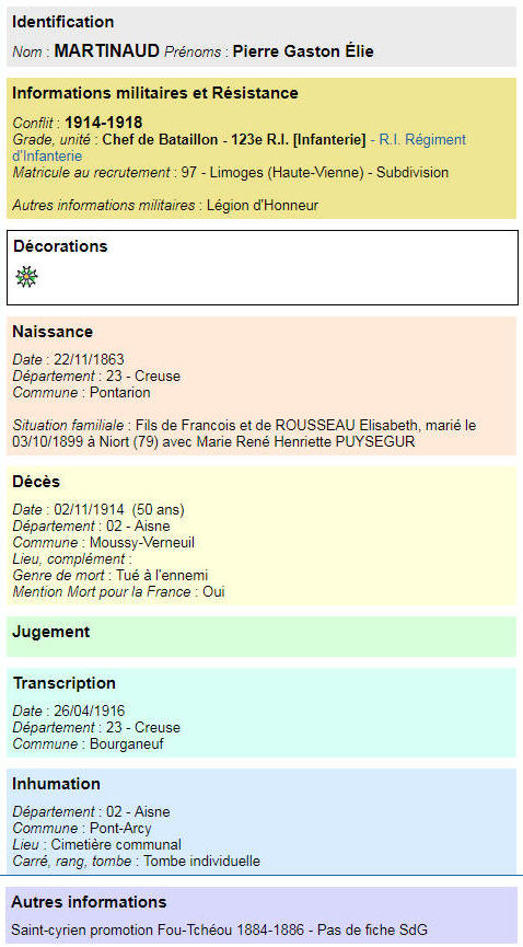 Né le 22 novembre 1863 à PONTARION (Creuse) - Tué le 2 novembre 1914