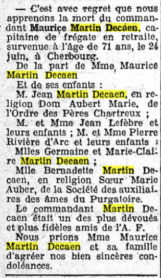 (Oise) - Décédé le 24 juin 1943 à CHERBOURG (Manche)