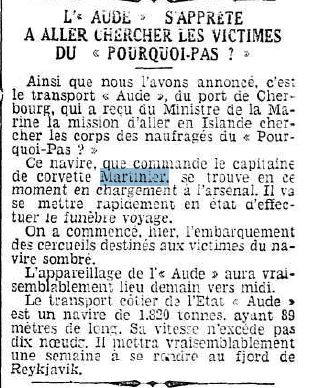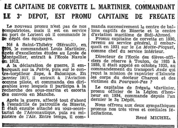 second de l'Océan était en 1936 commandant du transport Aude, qui
