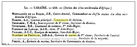 d’administration sur le Brick aviso CERF, station du Brésil (Louis