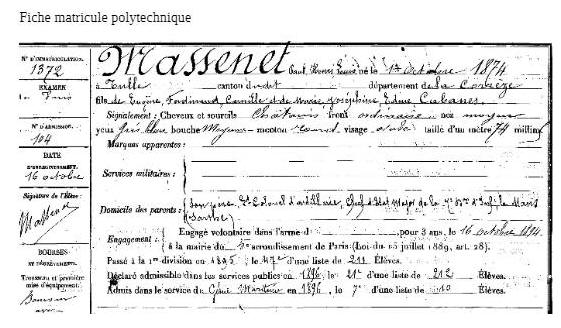 Elève de l'École polytechnique le 1er novembre 1894, opte pour le
