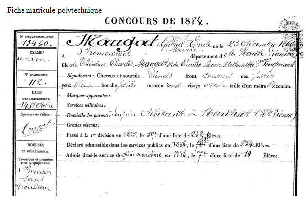 Élève de l'École polytechnique le 1er novembre 1884, opte pour le