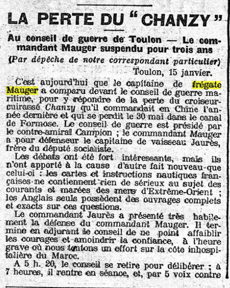 Commandant la chaloupe-canonnière "MUTINE", Station de l'ANNAM et du