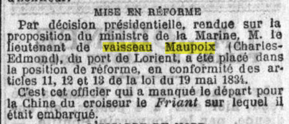 par décision du 2 août 1900 (9 aout 1900 / Presse Ouest-Eclair)