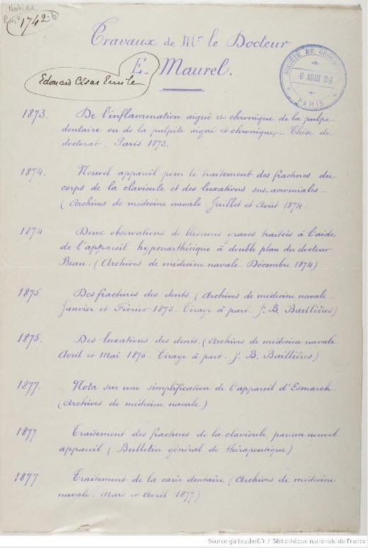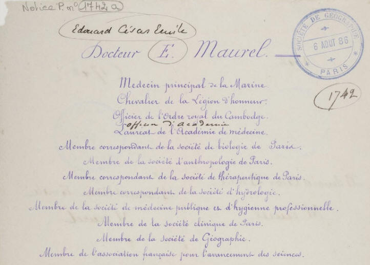 Sociétés dont la Société d’anthropologie de Paris, la Société de
