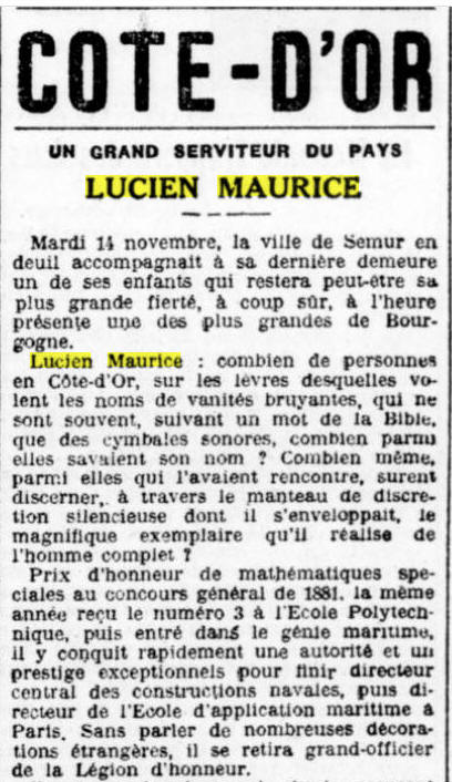 Obsèques le 15 novembre 1932 en l'église de Semur en Auxois