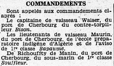 de vaisseau de 2ème classe le 5 octobre 1912; port CHERBOURG.