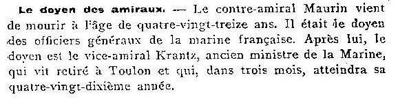 TOULON (Var) - Décédé le 19 septembre 1911 à VERSAILLES (7 rue