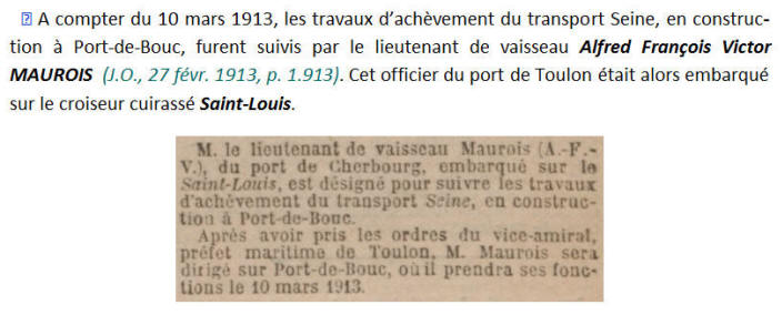 Commandant le transport "SEINE", Service du littoral.