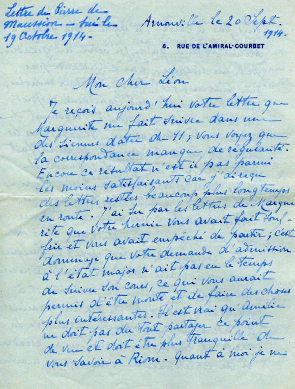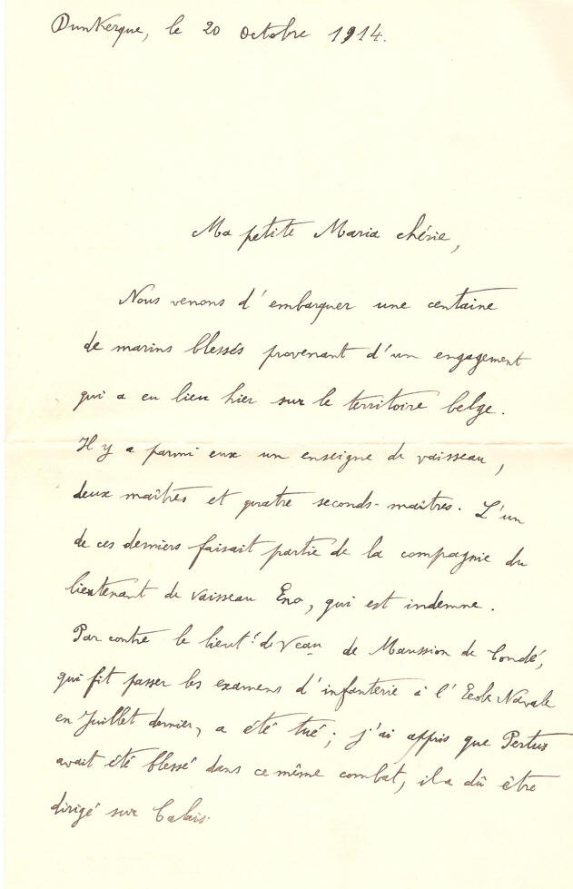 Lettre où il est mentionné / Dunkerque, 20 octobre 1914
