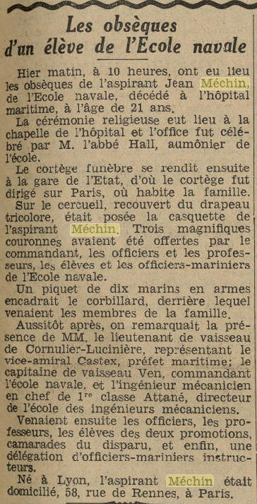 Entre à l'Ecole navale en 1934