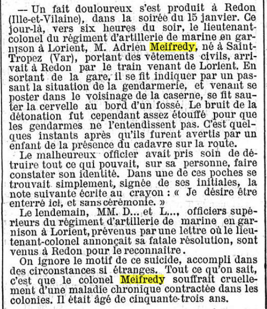 Au 1er janvier 1881, en service au RAMA de LORIENT.