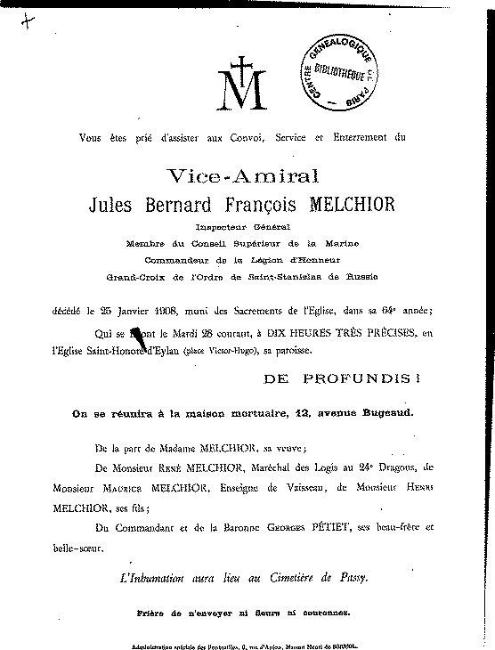 (Seine-et-Marne) - Décédé le 25 janvier 1908 à PARIS (Seine).