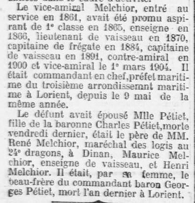 le 18 février 1891, il commande les cuirassés "RICHELIEU" &