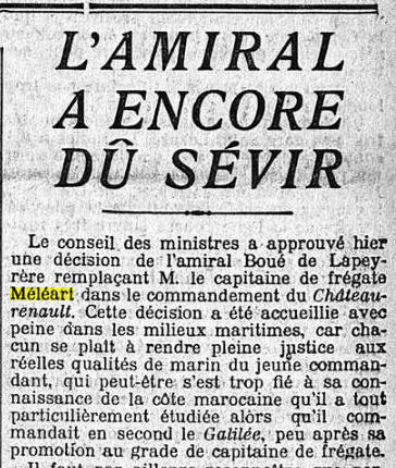 Aide de camp auprès du Contre-amiral François FOURNIER, Commandant