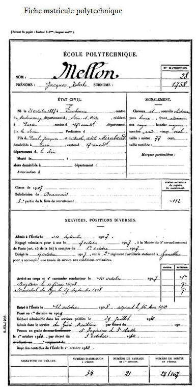 Élève de l'École polytechnique le 1er octobre 1907, opte pour le
