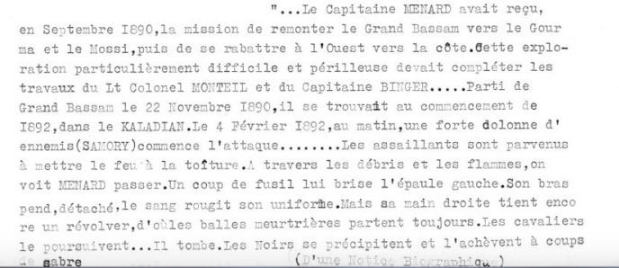 4 février 1892 : mort du capitaine Menard (Côte d’Ivoire).
