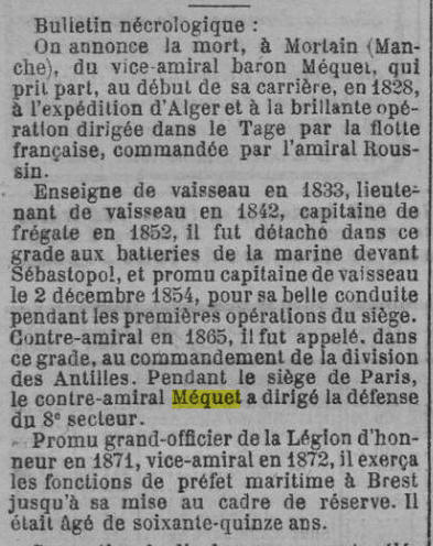 Vice-amiral en 1874, préfet maritime de Brest de 1874 et passa dans