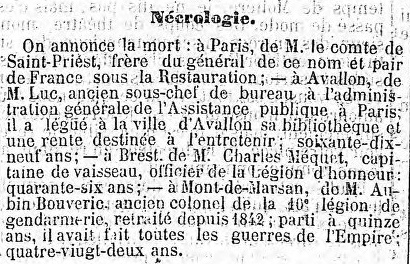 31 décembre 1780 - Agon-Coutainville (Manche). Décédé en 1864