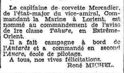 Lieutenant de vaisseau le 20 février