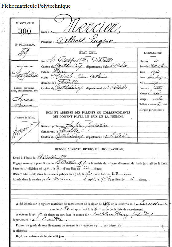 Élève de l'École polytechnique en 1899, opte pour la Marine.