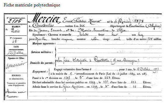 Élève de l'École polytechnique le 1er novembre 1897, opte pour le