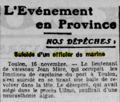 sur le cuirassé "MASSÉNA", Escadre du Nord (Cdt Ernest MARQUER).