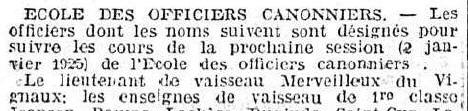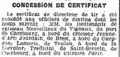 Enseigne de vaisseau de 1ère classe le 1er février 1919; port