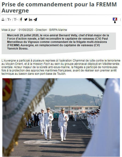 de la République en date du 8 avril 2020 : Commandant de la frégate