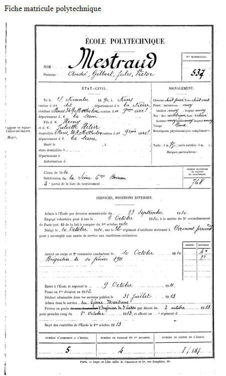 Élève de l'École polytechnique le 1er octobre 1910.