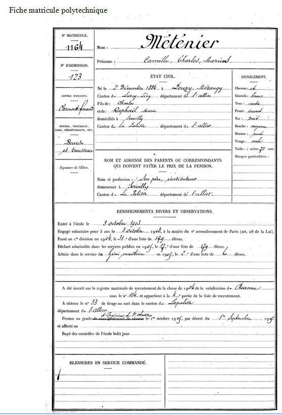 Ingénieur de 2ème classe le 1er octobre 1907.