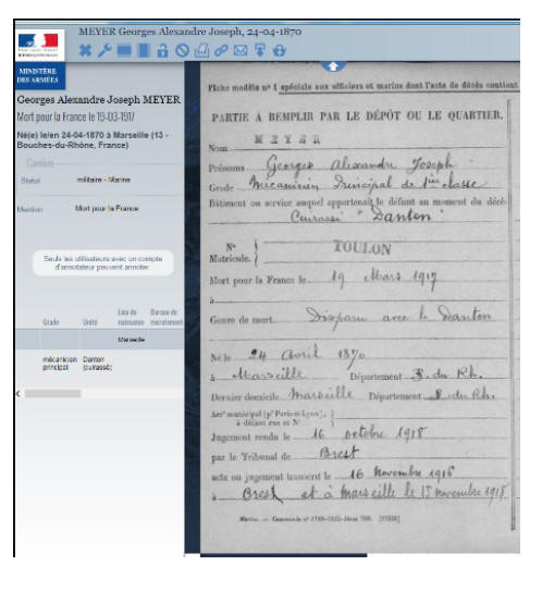 Mécanicien principal de 2ème classe le 22 avril 1906; port TOULON.