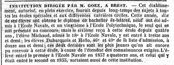 Élève de 2ème classe (Aspirant) le 1er septembre 1840, port BREST.