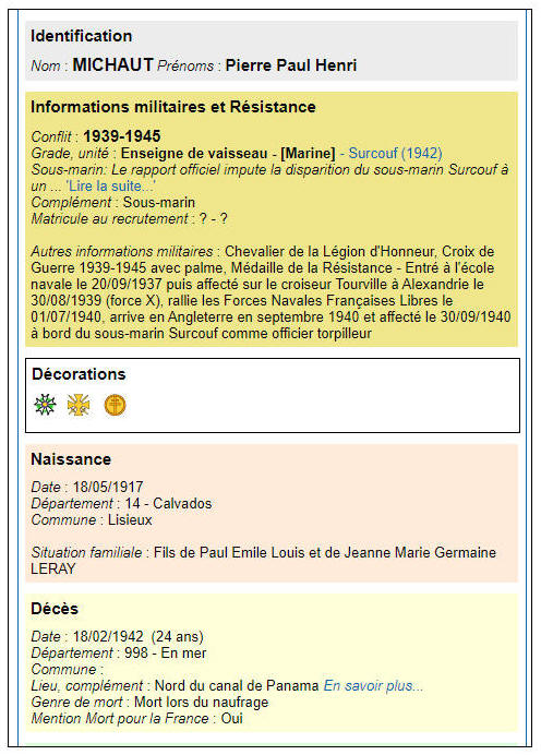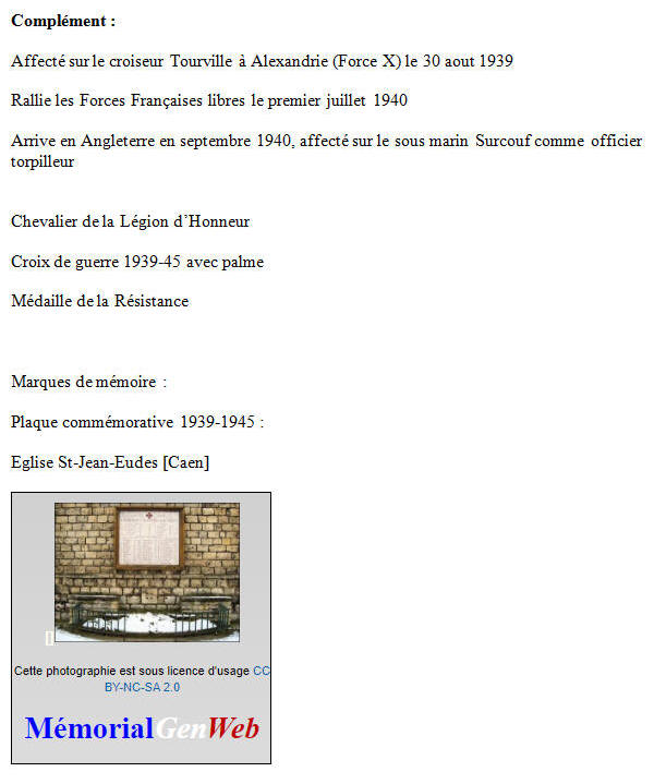 A son décès, officier torpilleur sur le sous-marin "SURCOUF"