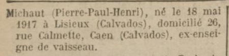 Né le 18 mai 1917 à LISIEUX (Calvados)