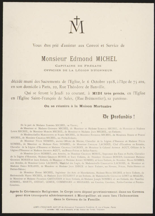 (Hérault) - Décédé le 6 octobre 1918 à PARIS XVIIème (Seine).