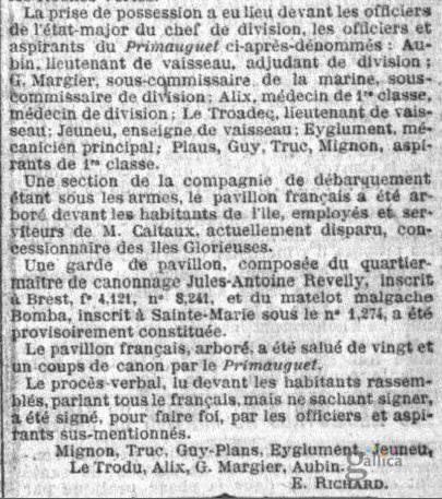 quelques marins morts lors de l’invasion de l’île en 1890.
