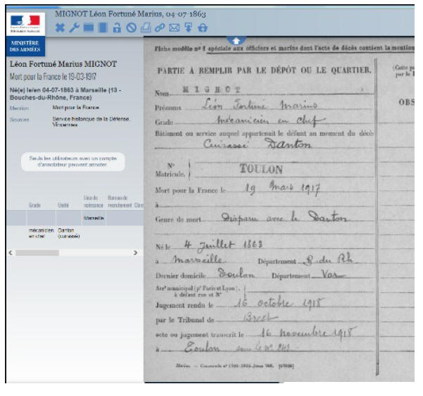 Jugement déclaratif de décès rendu le 16 octobre 1918 à BREST et