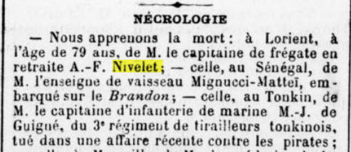 (Alpes de Haute Provence) - Décédé le 23 janvier 1891 au SENEGAL