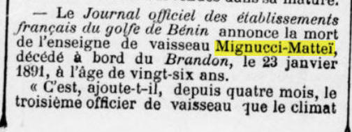 décembre 1886 , ajout de Mattei à son nom : Mignucci - Mattei