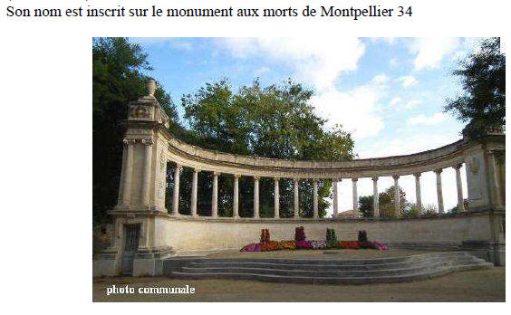 MONTPELLIER (Hérault) - Disparu en mer le 8 novembre 1942 au large