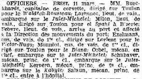 Enseigne de vaisseau de 2ème classe le 5 octobre 1912; port BREST.