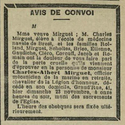 ARRANCY-sur-CRUSNE (Meuse) - Décédé le 23 novembre 1902 à BREST