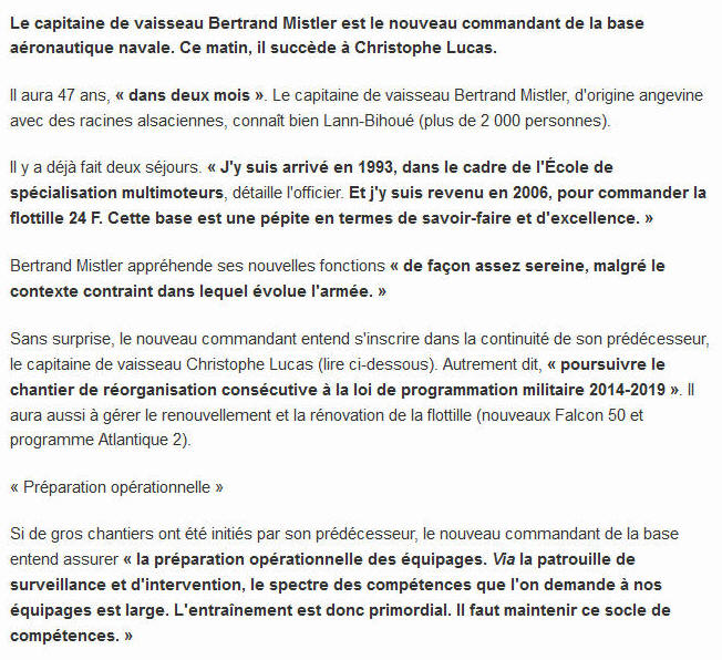 vaisseau Bertrand Mistler, commandant la BAN Lann-Bihoué inaugure le