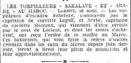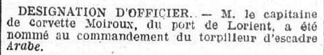 Au 1er janvier 1921, Commandant l'aviso "AILETTE",