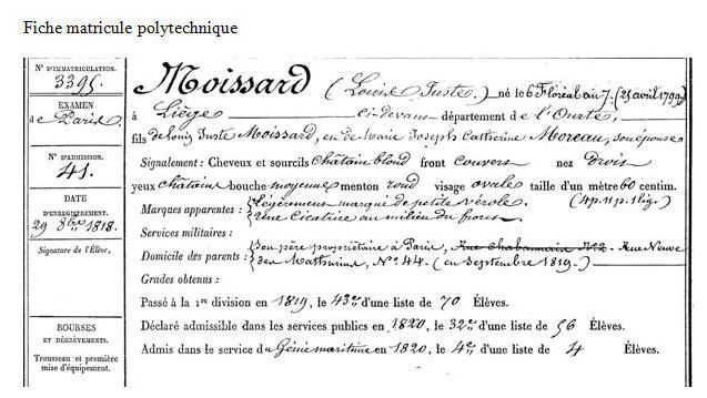 Sous ingénieur de 1ère classe le 12 aout 1831