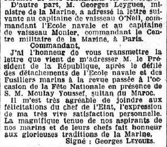 de Fusiliers Marins cet Officier est cité à l'ordre de l'Armée