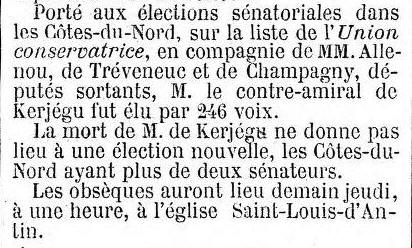 janvier 1876, il fut élu sénateur des Côtes-du-Nord, le 3e sur 4,