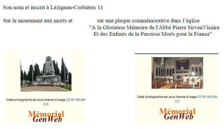 LEZIGNAN (Aude) - Tué le 8 décembre 1917 sur le torpilleur
