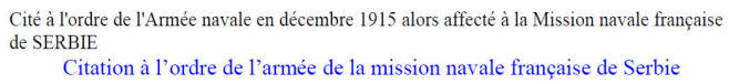 l'Armée navale en décembre 1915 alors affecté à la Mission navale
